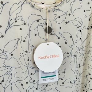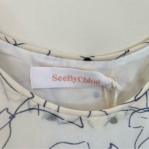 See by Chloe Ruffle Pleated Tiered Mini Shift Printed Tank Dress Cream 44/US 12
