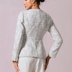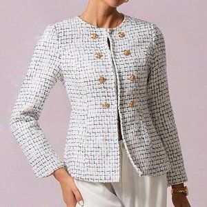 White Preppy Womens Plaid Pattern Double Breasted Tweed Overcoat