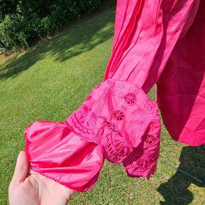 Vintage ladies' plus size hot pink blazer jacket with amazing embroidered / lace detail bell sleeves.