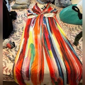 Bought this dress and have never worn it . Beautiful dress soft material. Multicolor & it’s a fun sexy look ..