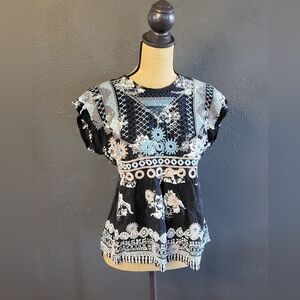James Kenrob by Dalton vintage 80s acrylic sailor sweater with short sleeves, sailor collar, and neck tie in blue and white knit.