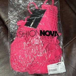NWT fashion nova, hot pink fishnet one piece swimsuit. Very appealing & love the design😍