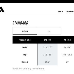Adidas women's sweatpants is in excellent like new condition.They are xs or according to Adidas' sizing chart 0-2. There are 2 front/side pockets, mesh inner lining with zippered slit to side hem. Waist is elastic with drawstring for custom fit. I have not measured personally, but included the size chart from Adidas. Please see photos for details, thanks.