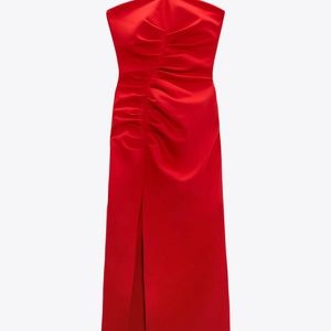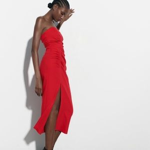 Zara limited edition celeb style ruched tube midi dress with slit
