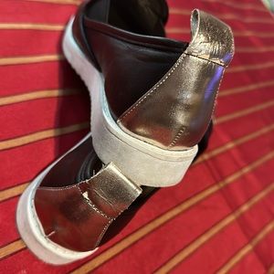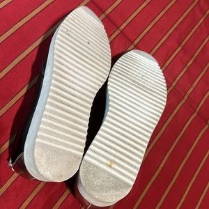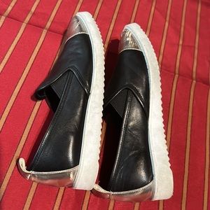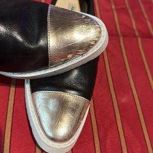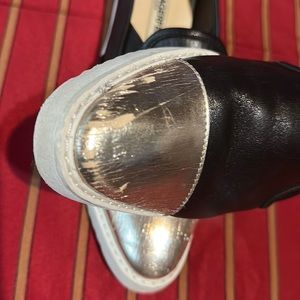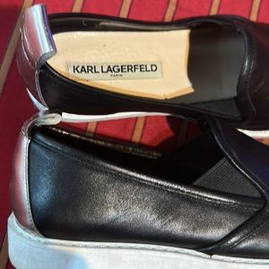 Leather slip on, Karl Lagerfeld Paris Cler-Cler cap toe ( see peeling left toe damage)comfy memory foam inner