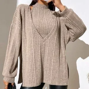 Casual Set Slit Hem Top & Halter Top Trendy Now
