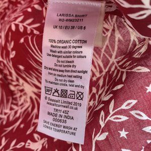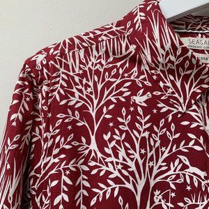 Seasalt Larissa Shirt Size UK 10 Red Long Sleeves Cotton Tree Woodland
