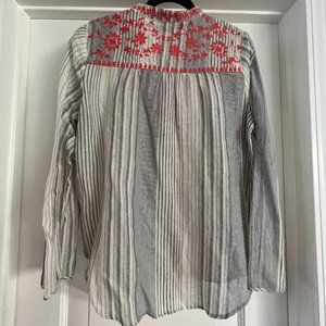 Lovestitch Boho Stripe Embroidered Tie Neck Top