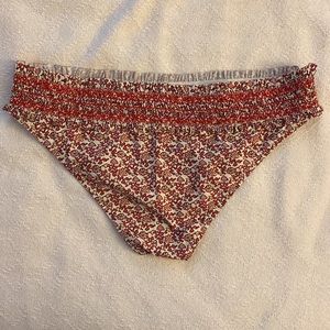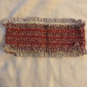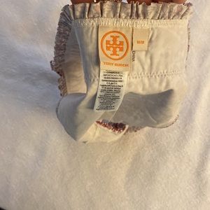 Tory Burch Costa Bandeau top and bikini bottom. Gently used. Sold as a set. Super cute smocking and ruffles. Small top and medium bottom