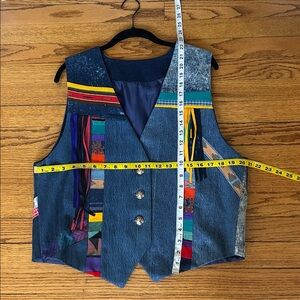 VINTAGE Patchwork Denim Vest with Fringe HANDMADE