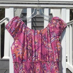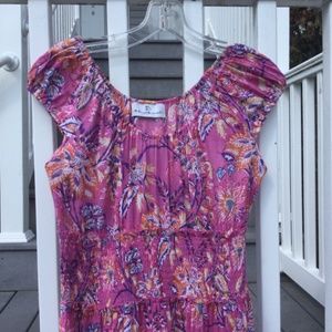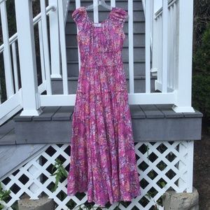 The Fox and the Mermaid Pink Floral Smocked Tiered Cotton Maxi Dress M Boho New