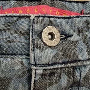 Size 9 jean shorts. Features a cute faded floral pattern, front pockets, back pockets, and a secure zipper/button closure. Good condition.
