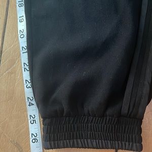 Ted baker jogger style pants, black, size 2 ( I think they are a big size 2) side pocket, elastic waist band with the drawstring, very lightweight, waistband is stretchy, but the pants material is not stretchy, excellent condition