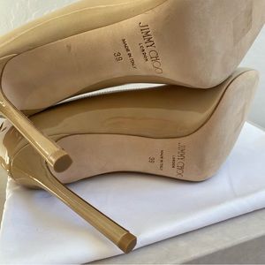 SOLD Jimmy Choo Romy 100 Nude Patent Leather Stiletto Heel