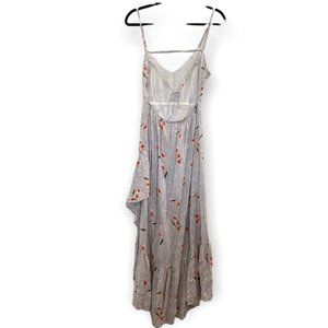 Urban Outfitters Floral Print Ruffle Trim Midi Dress Hi Low White Small