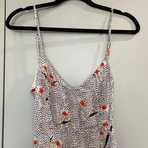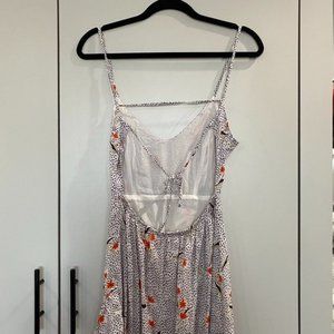 Urban Outfitters Floral Print Ruffle Trim Midi Dress Hi Low White Black Orange Small