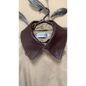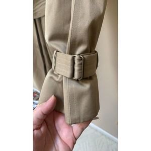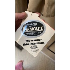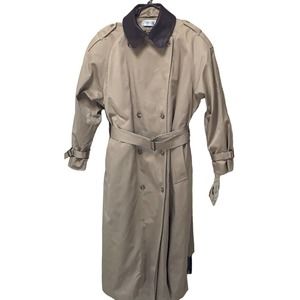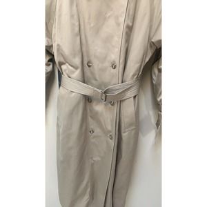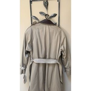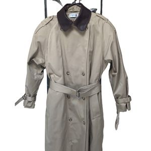 So much to say about this coat. Removable thermolite lining, removable faux leather collar. Change the look of this trench fast! Belted waist and sleeves! Button up around neck or button down for I different look. Just fabulous for those cold winters! Split on back with button. Extra buttons. Very heavy coat with lining. Much lighter without. Awesome,.