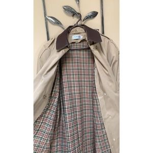 Vintage J.G. Hook Trench Coat Womens Size 14 Regular Plaid Lined Yoke Button Up.