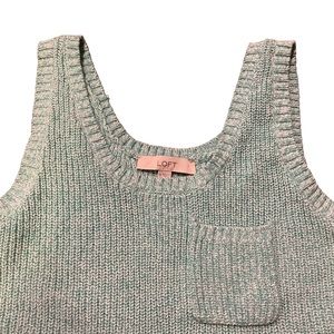 Like New Women’s Medium Green and White LOFT Sweater Tank Top. Scoop neck. Pocket on front chest. Thick sweater material. Look at last pic for exact green color. It’s a little brighter green than the other pics.
