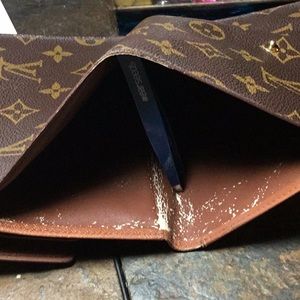 Beautiful large Louis Vuitton wallet, this wallet fits a passport inside! Some wear on one corner as well as missing stitching in same area where serial code is, see pics. Otherwise in beautiful condition!