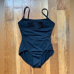 Never-worn black label Kiki leotard features a full front lining, nylon fabric, and is in the hand dip-dye color Antique. The leotard is size M and still has original bag.