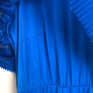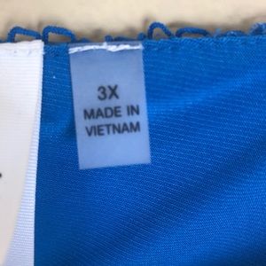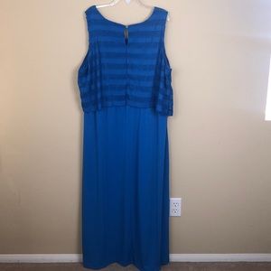 Gorgeous! Royal blue, sleeveless maxi dress with beautiful blue overlay from NY Collection Woman. Button closure at neck in back creating keyhole. Elastic empire waist. Stretchy lightweight fabric hangs nicely, and is great for summer! Really pretty dress for party, work/career, or wedding! Size 3X.