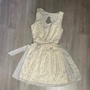 By & By brand size medium dress. Off white color with gold specks. VGUC (bc white) Worn once for bridal shower. Smoke free, pet friendly home. Cross posted.