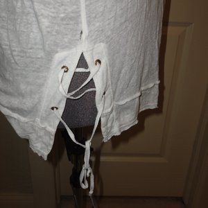XCVI Women's White Short-Sleeve White Linen Blouse w/ Side Ties Size S