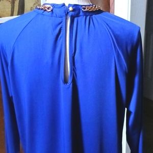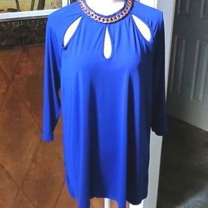 NWT NEW Glory Uniquely Designed Gold Chain Cut-Out Cobalt Blue Plus Size Tunic
