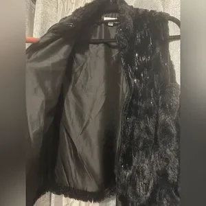 Gorgeous Gorgeous Faux Fur Sequins Vest‼️Faux leather down the zipper front