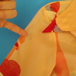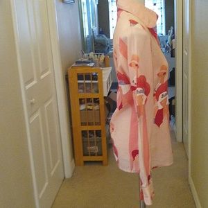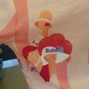 Vintage Michael Comte Paris pink and red point collar blouse size small. small mark on sleeve as seen in last pic but not noticeable ...super cool shirt with deco style ladies in hats! *