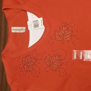 Decorated Originals Orange 3/4 Sleeve Blouse w Leaf Embellishments 2X NWT