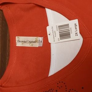 Decorated Originals Orange 3/4 Sleeve Blouse w Leaf Embellishments 2X NWT. This blouse is in excellent condition with no holes or stains.