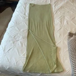 green maxi skirt with slits