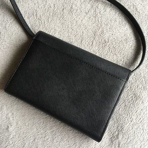 KATE SPADE Black Leather Laurel Way Jeweled Crossbody Bag Clutch Wallet with removable strap EUC no signs of use and in perfect condition 7.5” x 5.5” x 1.5” with some expansion room. Lots of compartments including a zippered one plus billfold and 12 credit card slots