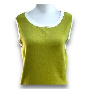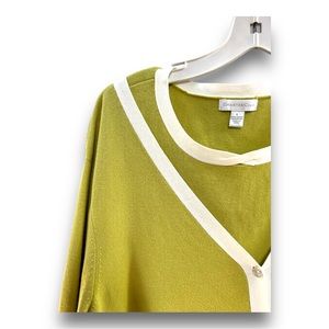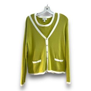 CHARTER CLUB Vintage Y2K Olive green white trim cardigan and tank top SZ L