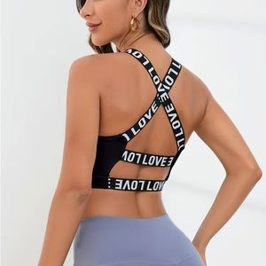 U-neck Letter Criss Cross Back Sports Bra, Sleeveless Yoga Fitness Workout Tank