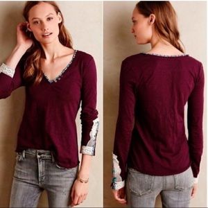 Anthropologie crochet cuff purple knit long sleeved shirt, M.