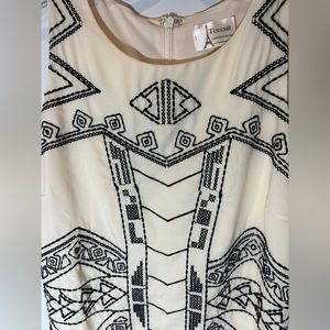 Touché French Sleeveless Ivory And Black Embroidery Aztec Print Mini Dress Sz XS