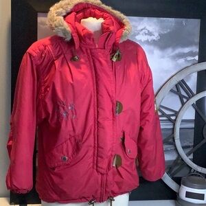 Pretty purple color in a crepe style material. 2 piece set with fully lined blazer and skirt with ruffle hem accent and side zip closure. Approx measurements of blazer pit to pit 20, length 22 and sleeves 24 inches. Approx measurements of skirt laying flat 15 and length 25 inches. Lovely condition