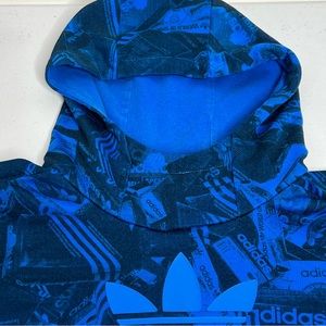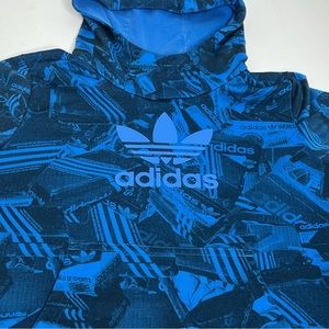 adidas trefoil hoodie all over print sneaker shoe box design blue youth size small