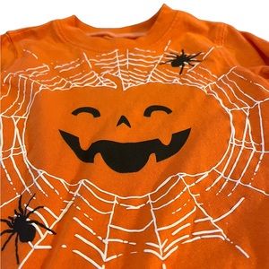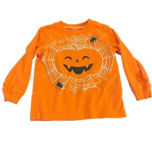 Carter's Boys 2T Halloween Jack-o-Lantern Long Sleeve Shirt. Orange knit shirt with black jack-o-lantern and spiders on a white web. Perfect for a Halloween costume.
