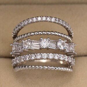 NEW 925 STERLING SILVER DIAMOND ENGAGEMENT RING, CUTE RING, SHINY RING.