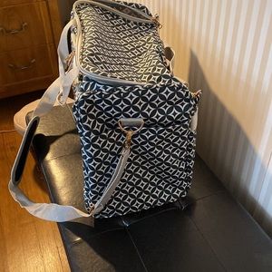 NWOT. Never used. Navy blue and white pattern. Lightweight. 9” wide by 18” long. Has shoulder strap Smoke free home