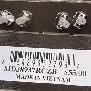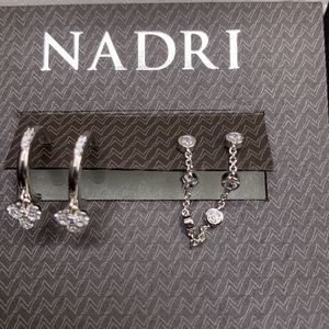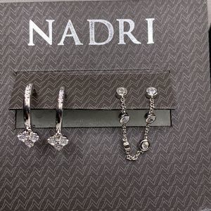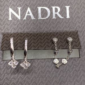 Silver-Tone Pave Simulated Diamond Hoop Earrings & Chain Double Stud Earrings.