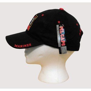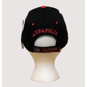 USMC Marine Corps Annapolis Bulldog Ball Cap Black Red Embroidered Hat Adj Strap