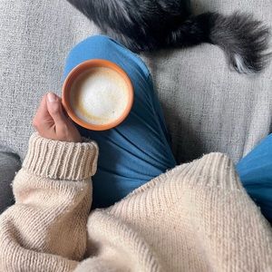 Babaa no. 15 sweater. Not 100% sure of the color but I am fairly certain it’s Rose. It’s a beautiful tan/cream color. Good used condition, some pilling and signs of wear (see pictures) Very warm, 100% Spanish eco wool. Has always been hand washed with wool/cashmere shampoo and laid flat to dry as per the Babaa website instructions; never wrung or hung to dry. Well loved after but after many years still holds up wonderfully!