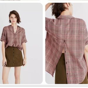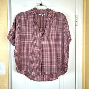 Madewell Pink Hartley Plaid Courier Button Back Boxy Cotton Shirt Size S
