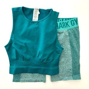 Gymshark L/M Flex Seamless Cycling Shorts & Flex Seamless Strappy Sports Bra Set