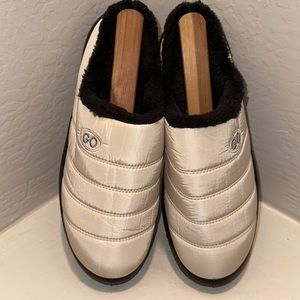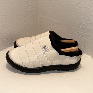 GO Comfy Memory Foam Slipper Plush Fleece Lined Shoe Size 43 EU (US 9.5) Beige Black NEW